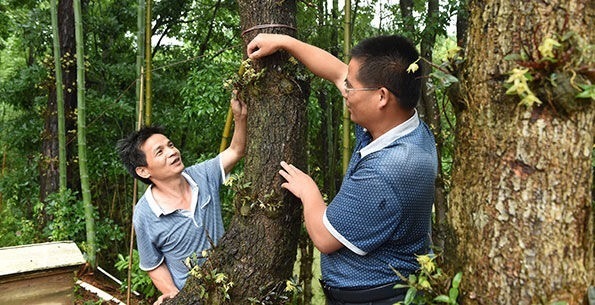 武平县林农在种植基地观察铁皮石斛的长势。林善传 摄 15年间,福建活立木蓄积量净增1.7亿立方米。