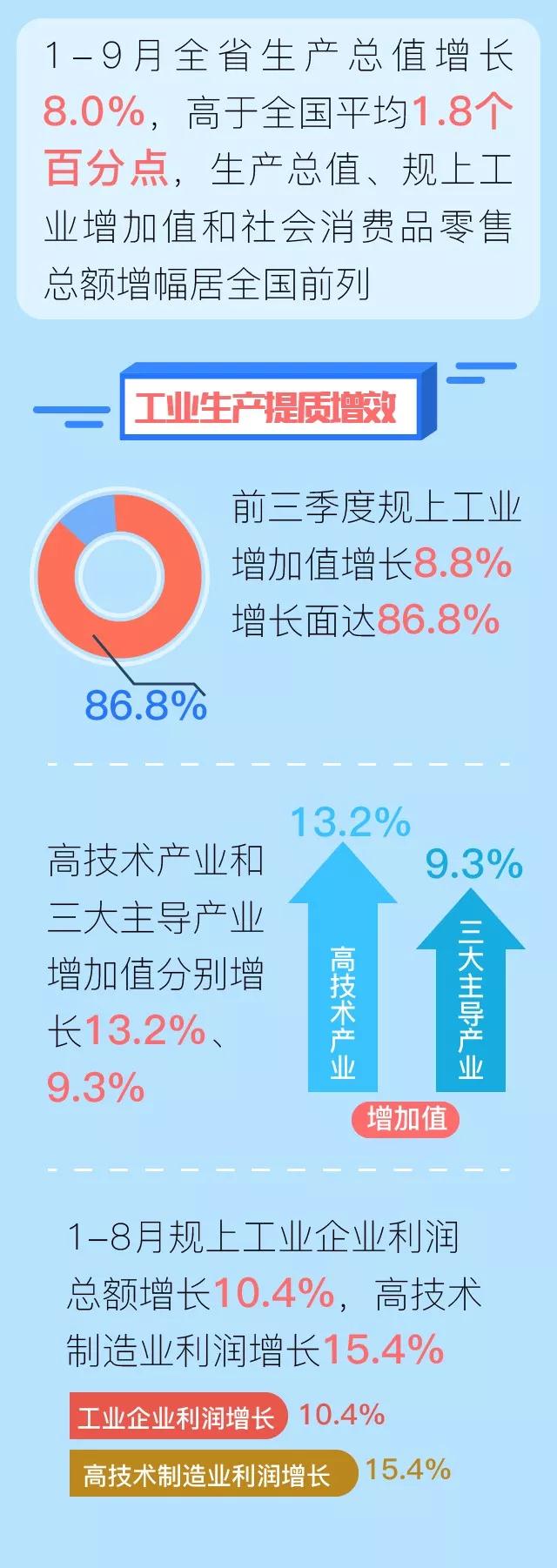 今年以来,全省深入学习贯彻习近平新时代中国特色社会主义思想,认真贯彻落实习近平总书记在参加十三届全国人大二次会议福建代表团审议时的重要讲话和对福建工作的重要指示批示精神,按照党中央、国务院决策部署,紧扣稳中求进工作总基调,紧扣深化供给侧结构性改革,紧扣高质量发展,全省经济延续总体平稳、稳中有进的态势,呈现稳、进、实的特点,前三季度,全省生产总值增长8.0%,推动经济社会发展取得实实在在成效。