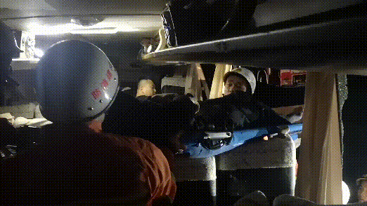 第5名乘客获救 根据现场情况,救援人员进入车内以后,首先将腿部受伤的两名乘客先后抬上担架从窗户运送出去。再对另外三名被座位卡住的乘客依次进行破拆救援。经过近80分钟,被困乘客全部获救,并移交给现场医护人员。 事后据了解,由于救援及时,受伤乘客均无生命危险。 乘坐大巴车遇险如何自救 生活中,我们经常乘坐大巴车等公共交通出行。那么,大巴车有哪些逃生通道?怎样使用?乘坐大巴车发生翻车、落水、着火等紧急事故时该如何自救?乘坐公共交通时要注意哪些问题? (内容来源:综合中国消防) |