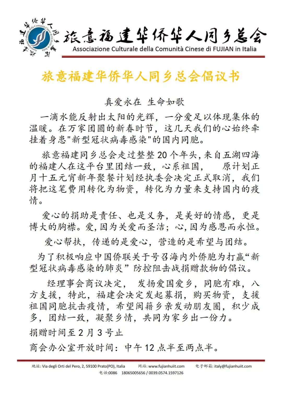 一方有难,八方支援 总有一种爱 感动你我! 近日 祖国多地发生新型冠状病毒感染的肺炎疫情 牵动着海内外侨胞的心 来看看福建这些海外侨胞 他们正为祖国、家乡贡献力量! 感动 福清籍阿根廷华裔儿童 为中国捐赠25000只医用口罩 近日,福清市发布了“同呼吸,共命运 抗击病毒我们在一起”关于捐赠医用防护物资的倡议书,引起了海内外福清籍乡亲热切的反响。其中,两位福清籍阿根廷华裔儿童,9岁的陈昀皓和6岁陈昀晗小朋友,用自己的春节压岁钱订购了医用口罩25000只,到货后将全部捐献给福清市政府。 据了解,这批25000只医用口罩将于1月27日到达阿根廷,届时将即刻寄回国内。 除了他们 还有这些福建海外侨胞 纷纷伸出了援手! ↓↓↓ 共抗疫情! 旅意福建华侨华人同乡总会倡仪书 旅意福建华侨华人同乡总会决定积极响应中国侨联号召,倡议在意华侨华人积极行动起来,为应对疫情捐资捐物。倡议书如下: