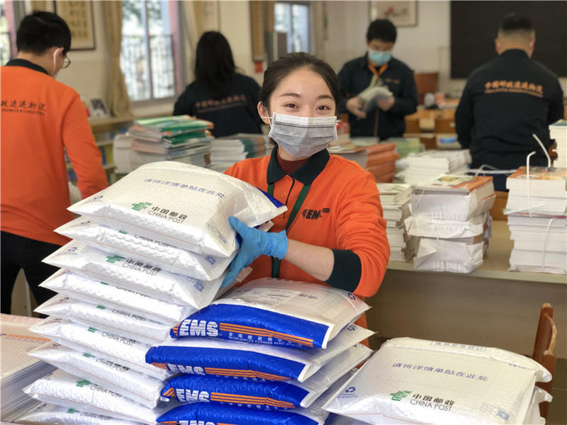福州邮政将教材快递到学生家长手中。中国邮政集团公司福建省分公司供图 东南网2月23日报道(本网记者 张立庆)日前,本网报道了省政协委员陈雨农“停课不停学,新教材应紧急配送到学生手中”的建议,此建议立即引起了不少家长的关注。记者从我省各地中小学了解到,不少学校在经家委会的支持下,通过邮政快递的方式将教材寄送到学生手中。 福州洪山小学和长乐江田中学先后应学生家长需求,尝试了“邮政EMS”配送教材服务,为全校高年级小学生统一配送新教材。福州和长乐邮政分公司接到教材配送任务后,主动上门打包封装,并对教材和配送车辆进行消毒处理,均于当日通过专车专人完成了收寄配送服务。