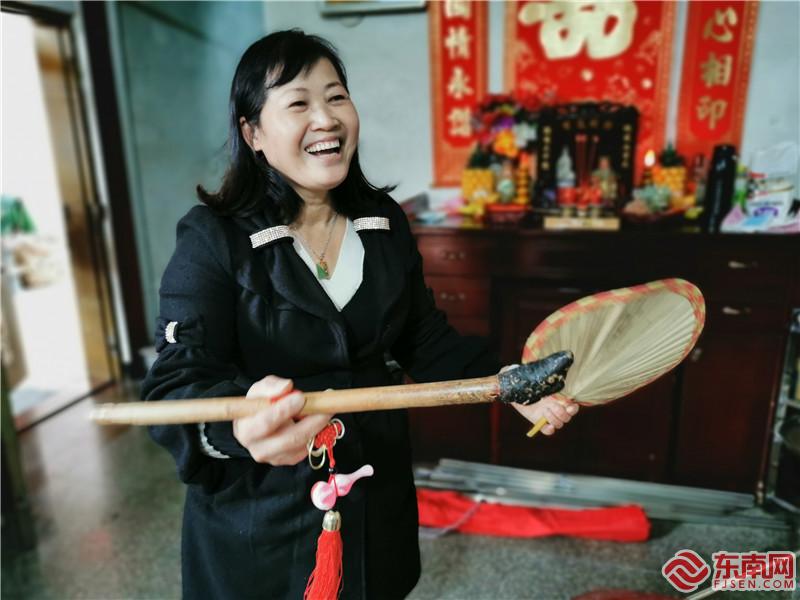 吴润珠在表演。东南网记者 谢玉妹 翻拍 吴润珠向记者展示“火鼎公婆”所用的烟斗和蒲扇。东南网记者 谢玉妹 摄 东南网4月14日讯(本网记者 谢玉妹 文/图)浓妆艳抹媒婆痣,宽袖阔腿摇摆姿,熊熊烈焰烧妖氛,公婆抬鼎留乾坤……说起泉州乃至闽南最“魔性”的民俗表演,火鼎公婆一定榜上有名。独具特色的乡土气息、诙谐逗趣的表演形式、神秘的民间信仰色彩,让它根植于泉州草根文化的血液中,寄托着百姓对消灾解难、国泰民安的希冀。 新冠肺炎疫情期间,大大小小的民俗活动取消,但“泉州鲤城火鼎公婆”省级代表性传承人吴润珠并没有闲着,她通过线上渠道,为学习者们示范动作,督促大家在家勤练习。她说,我为乡亲送欢乐的初心从未改变。 火鼎“踩路”,“公婆”扮丑 史料记载,清代中后期,火鼎公婆表演已在泉州城乡流行,多见于迎神赛会的民俗踩街活动。民间认为,这种表演源于城隍、王爷等神祇出巡时抬火鼎“踩路”,表达了人们对驱除疾疫、驱邪镇恶的向往和对风调雨顺、国泰民安的祈求。 过去,火鼎公婆表演一般由抬着火鼎的“火鼎公”“火鼎婆”及挑着柴火担子的“女儿”组成。“女儿”需不时往火鼎中添加柴火,让火鼎越烧越旺。但表演者也常被烫伤,脸会被熏黑。随着时代变迁,柴火已为“电子火”替代,同时不再有“女儿”挑柴,表演核心集中于“公”“婆”二人。2007年,“泉州鲤城火鼎公婆”被列入第二批福建省非物质文化遗产保护名录。 作为“丑角”,火鼎公婆的装扮与泉州高甲戏中的“破衫丑”“家婆丑”相似,有浓郁的地方戏曲韵味。吴润珠介绍说,单是火鼎婆的舞蹈步法,就分为小碎步、掌中木偶步、提线木偶步、四方步、上山步、下山步、过独木桥步等近十种。 更妙的是火鼎公婆的神情手势。踩街时,演员根据队伍节奏自由发挥,舞姿神态变化无穷。虽然是丑角,“公婆”表演“打情骂俏”须体现出诙谐滑稽感,“歪唇咧嘴”亦显可爱。如何神形俱佳,全凭演员自身的经验和默契。 为了达到更好的效果,装扮和道具就显得特别重要。“火鼎婆”浓妆艳抹的脸上,常点着一颗蜘蛛状的媒婆痣,寓意“知足常乐”;“火鼎公”则头戴圆帽,身穿马甲褂子和宽筒裤,脚着黑布鞋,手拿长旱烟管。两者风格既诙谐又和谐。 |