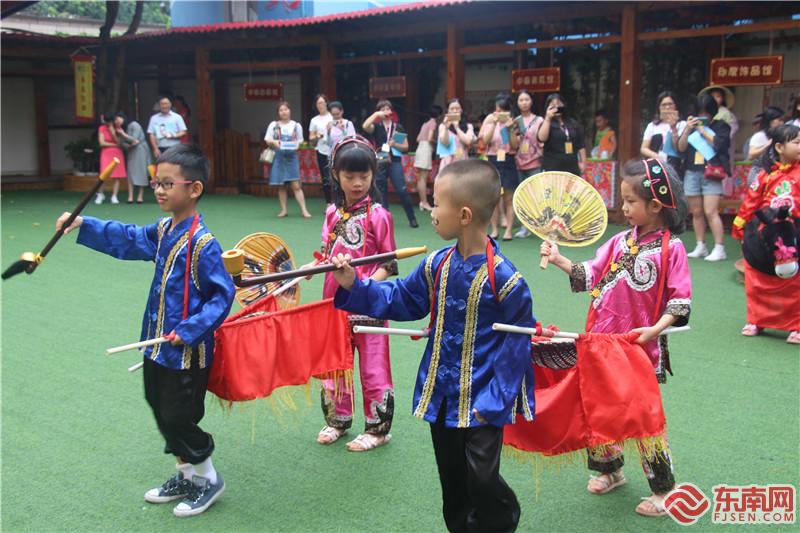 泉州市第一幼儿园的孩子们在开放日活动中表演“火鼎公婆”。东南网记者 谢玉妹 摄
