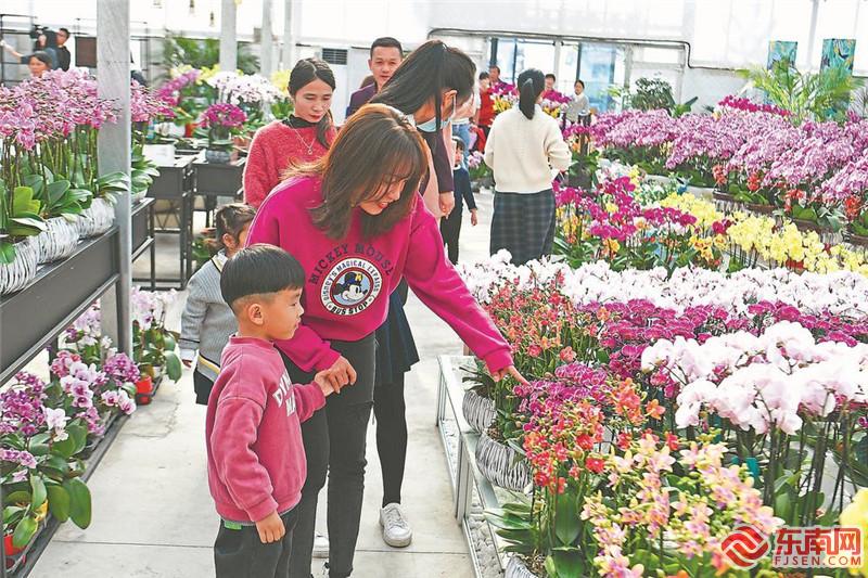 东南网1月28日讯(福建日报记者 张辉 通讯员 黄海/文 林升/图) 记者24日从省林业局获悉,截至2020年底,全省花卉种植面积达142.1万亩,全产业链总产值1062.5亿元,实现出口额1.64亿美元,同比分别增长2.7%、19.5%和9.9%。 近年来,我省各地持续加大扶持花卉生产设施建设,设施花卉种植面积持续扩大,设施水平不断提高,花卉种植向规模化、标准化、精细化方向发展,花卉单位面积产出不断提高,产品品质持续提升。同时,花卉销售渠道更加多元化,电商销售发展迅猛,成效显著。2020年电商销售各类花卉22亿多元,逼近花店销售额,占各类销售总额的23.4%。 图为近日,在以鲜花为主要产业的泉州市洛江区马甲镇永安村,游客前来观赏选购蝴蝶兰、罗汉松、茶花等花卉。 |