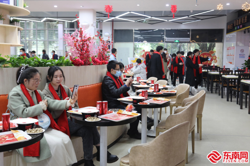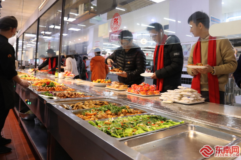 同学们拍照留恋 通讯员王忆希摄 对于最受关注的佛跳墙等菜单创意,相关负责人介绍到,闽菜是中国八大菜系之一,餐厅希望给留校学子呈现“福大年·福州味”的丰富选择,在拟订菜单的时候,就把福州过年最具特色的地方特色菜品都列入菜单,包括了传统闽菜的佛跳墙、荔枝肉、红鲟饭、太平燕、红烧鱼等,保证在场同学能吃到不少于20道地方风味。同时,丁香园民族餐厅还为少数民族师生和留学生提供特色年夜饭,全力满足师生不同的口味需求。餐厅也摆放了花生、瓜子、福桔等,希望留校的学子们在现场享受休闲、放松的温馨氛围,在学校和同窗们一起度过一个难忘的除夕夜。 为增添节日气氛,让师生身在异乡也能感受到家的温暖,后勤管理处从半个月前着手布置年夜饭现场,130余名餐厅工作人员从3天前开始准备年夜饭的相关事宜,不仅对餐厅入口处的摆台、堆头、户外绿植做了悉心布置,还为每位来就餐的师生准备了定制的大红围巾和印有“福大·福州年”字样的可口可乐,营造出浓厚的春节氛围。 在农历大年初一,福州大学还将继续为留校师生提供免费爱心餐,让师生持续感受学校的关怀与温暖。此外,学校后勤管理处将在假期全程做好餐饮、水、电、物业等保障服务,确保留校师生住得安心、放心。 |