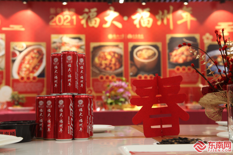 福州大学专门订制专属可乐 通讯员 王忆希摄 由于疫情防控的需要,福州大学今年的年夜饭采取领取餐券、分批分区自助就餐的形式,年夜饭供餐时间从下午四点半持续至晚七时,采用定制食盒+自助餐相结合的形式。其中定制餐盒由供餐企业中央厨房制作完成之后全程保温送达各个餐厅,现场自助餐则是在食堂现场制作。同学们无论何时进场,都能第一时间领取到可口而且丰富的菜品。