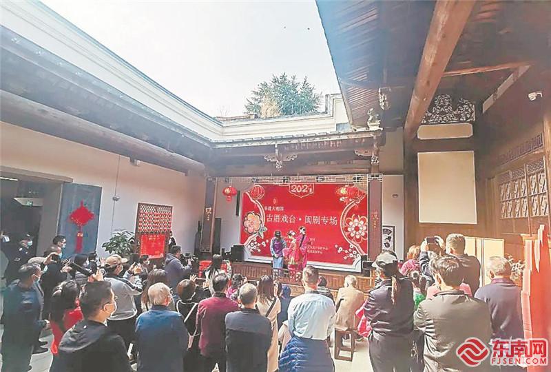 16日,正月初五,由福州市文化和旅游局主办、福州闽剧艺术传承发展中心演出的“非遗大观园”闽剧专场在福州市非物质遗产保护展示馆举行。福建日报记者 郭斌 摄 东南网2月18日讯(福建日报记者 郭斌 文/图) “留榕过年过福年,街头艺术等你来。”16日,正月初五,由福州市文化和旅游局主办、福州闽剧艺术传承发展中心演出的“非遗大观园”闽剧专场在福州市非物质遗产保护展示馆举行。 由梅花奖得主吴则文、国家一级演员林颖、著名闽剧老旦谢巧星、中国戏曲十大青年领军人物杨帅等优秀演员组成的阵容,吸引一拨又一拨市民和游客驻足观赏、拍照留念。 演出中,闽剧戏歌《硕果累累贺新年》结合闽剧艺术特色,唱响2020年我国战疫情、奔小康,硕果累累;传统闽剧小戏《招姐做新妇》《荔枝换绛桃——投荔》《贻顺哥烛蒂——说媒》《小放牛》、抗疫小戏《贻顺哥卖口罩》、闽剧小调歌舞《牡丹亭》以及优美动听的福州话歌曲《福佑福州》等,让在榕过年的群众一同感受浓浓的“虾油味”文化。 为满足就地过年群众的文化需求,营造喜庆祥和的节日文化氛围,春节期间,福州市文旅局举办以“虎纠丫霸”为主题的街头文化艺术节,为市民群众献上丰盛文化大餐,共同欢庆幸福之城的幸福年。 记者了解到,正月十五元宵节前,福州市各大历史文化街区都会开展街头“福快闪”展演活动。精彩的街头演艺节目和民俗非遗技艺展示,通过流行的“快闪”形式展现闽都传统文化和群众艺术,让其乐融“榕”的福州年味更加浓郁。 同时,一场包含演唱、舞蹈、乐器、魔术、脱口秀、话剧、糖画、面人等形式的街头文化艺术擂台赛持续亮相三坊七巷、朱紫坊、上下杭、南公祠、梁厝等五大历史文化街区,通过海选、半决赛和决赛三轮考评,遴选出一批“福州市街头艺术达人”。这批“达人”将在元宵节期间为市民群众联袂带来一场街头文化艺术汇演。 此外,作为已经连续举办十多年的节庆文化品牌活动,今年的海峡两岸民俗文化节以“线上+线下”结合的方式开展。线上通过短视频、H5、直播、竞赛、游戏等方式,展示福州传统年俗佳话、非遗技艺、美食传承等;线下组织非遗传承人、非遗传承示范基地在福州上下杭历史文化街区等地开展非遗绝活展演。 |