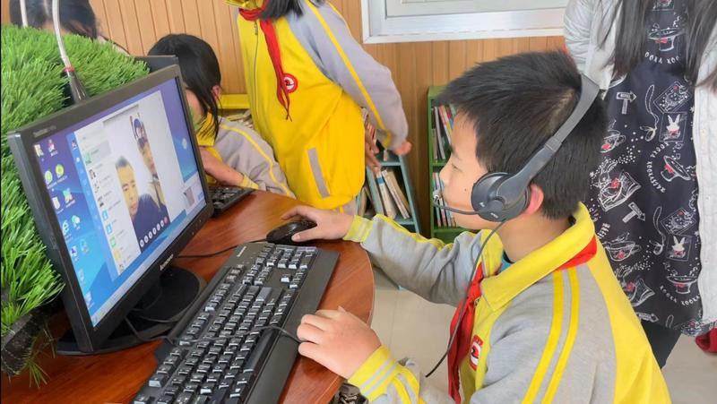 沙县夏茂镇第二中心小学亲情关爱室里,孩子们在社工引导下与父母视频聊天。