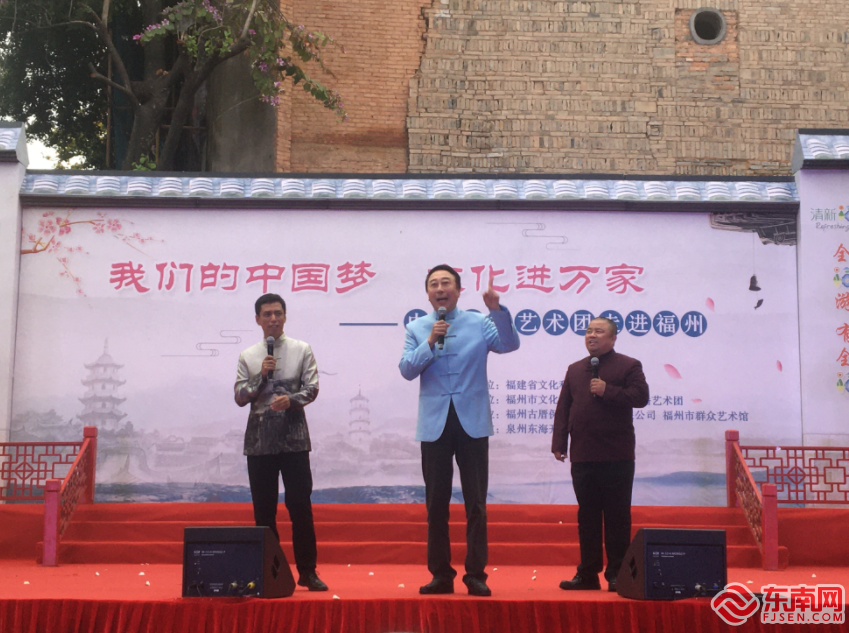著名相声表演艺术家冯巩在福州进行惠民表演。(东南网记者 蔡丽洁 摄) 东南网3月31日讯(本网记者 蔡丽洁)今日,著名相声表演艺术家冯巩携中国广播艺术团艺术家在福州市上下杭历史文化街区金银里广场举办“我们的中国梦•文化进万家”惠民演出活动。 福建省政府副省长郑建闽,全国政协常委、民革中央副主席、中国文联副主席、中国文艺志愿者协会主席、中国曲协副主席冯巩,省文旅厅副厅长林守钦,福州市政府副市长李春等领导出席活动。本次活动由省文旅厅主办,福州市文旅局、中国广播艺术团承办,福州古厝保护开发集团有限公司、福州市群众艺术馆具体执行,泉州东海开发有限公司协办。 此次活动以“美丽新时代•文化进万家”为主题,群众文化活动爱好者、闽剧戏曲传承者和艺术家们同台献艺。活动在福州市群众艺术馆的舞蹈《荣耀之光》中开场。歌曲《芦花》《一杯美酒》《深情守候》《我爱你中国》《追寻》《沧海一声笑》《江山》《不忘初心》,舞蹈《蹚窨天下第一香》,少儿闽剧《紫钗记》,相声《为福州喝彩》《我爱诗词》等10多个节目接连上演,一首首动人悦耳的歌曲,一段段美韵灵秀的舞蹈,一个个脍炙人口的相声,赢得了现场观众的阵阵掌声,热情的观众不时拿起手机拍起视频,整场演出都沉浸在热情洋溢的氛围之中。 中国广播艺术团成立于1949年,是在全国乃至全世界享有盛誉的国家级专业文艺表演团体。团队人才济济、阵容强大,培养了众多知名艺术家。演员们几十年如一日深入生活、深入基层,将大众喜闻乐见的文艺作品奉献给广大观众。此次来福州演出的有著名相声表演艺术家、连续33年登上央视春晚舞台的冯巩老师,著名相声演员贾旭明、侯林林、曹随风、王彤等,歌唱家岳璐、周子淇、朱烁燃(央视星光大道年度四强)、杨子一(央视星光大道年度亚军)、王小莹以及主持人赵千惠等。 此外,在现场,著名相声表演艺术家冯巩受聘为“福建文化顾问”。冯巩一行为福建艺术扶贫工程的受益者们捐赠了学习用品,勉励孩子们志存高远、再接再厉、奋发进取,以优异的成绩在奋力谱写全面建设社会主义现代化国家福建篇章的征程中贡献力量。 主办方表示,本次活动突出文旅融合发展,它既是我省创新实施文化惠民工程,向人民群众提供高品位文化产品和服务的积极探索,也是我省发挥文化名人效应,加强文化和旅游宣传推介的积极尝试。本次活动场地安排在福州历史文化街区上下杭,既体现了对古建筑、老宅子、老街区的珍爱之心、尊崇之心,也提升了上下杭历史文化街区的知名度和影响力。活动期间,冯巩老师一行还通过抖音等新媒体宣传推介了福州三坊七巷等旅游景区景点。 |