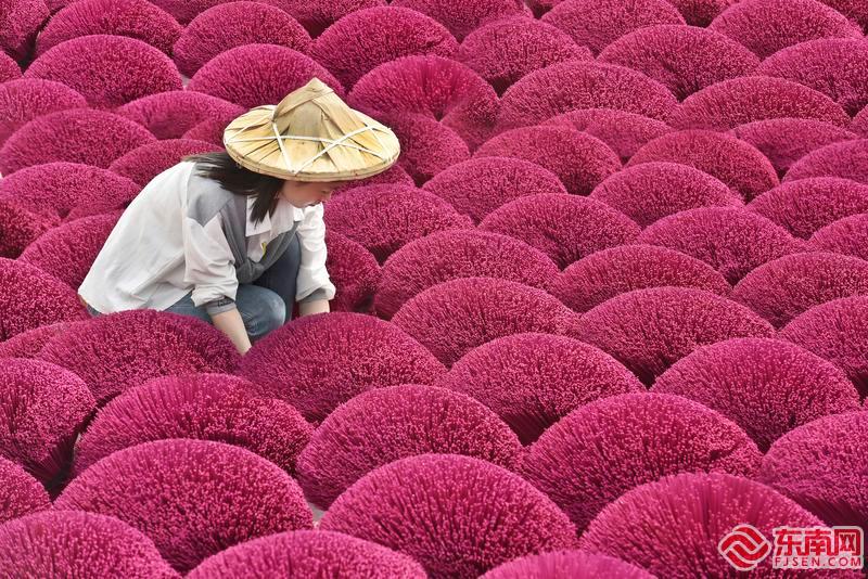 近年来,永春县加大扶持香产业聚集发展力度,助推永春香从家庭作坊走向规模企业,香产业多元化发展,实现了从传统的朝拜用香向功能香、养生香等高端香品转型。如今,该县已建成香品产业园,共有制香企业近300家,产品种类达300多种,远销欧美、东南亚等国家和地区。去年,全县香产业产值达102亿元。图为近日,制香企业员工在晒香。福建日报记者 林辉 通讯员 康庆平 摄 |