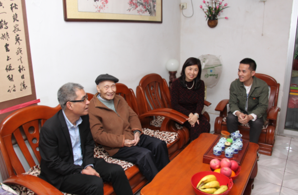 福建省文化和旅游厅一级巡视员吴立官(左一)一行,看望93岁厅级离休干部柯子铭。(主办方供图)