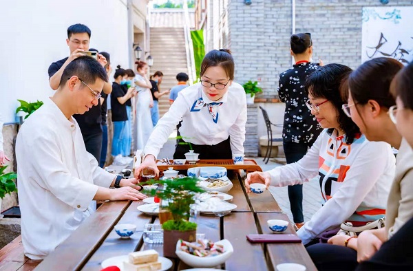 揭牌仪式。福州市商务局 供图 闽剧表演。福州市商务局 供图 嘉宾品茶。福州市商务局 供图 东南网4月30日讯(本网记者 卢金福)今日上午,福州鼓楼区三坊七巷中瑞心选茶坊正式揭牌营业,这是福州市大众茶馆试点项目之一,福州市商务局、鼓楼区商务局、南街街道以及中瑞集团等单位和机构领导参加揭牌仪式。 为进一步倡导健康消费理念,丰富完善茶叶经营主体大众消费服务功能,根据省、市关于打造让老百姓真正喝得起、喝得安全、喝得放心的茶品牌和茶馆消费场景的部署要求,福州市着力打造15个大众茶馆试点项目。 中瑞心选茶坊坐落于三坊七巷南华影城,总经营面积约850平方米,包含二楼主茶馆、一楼连廊、后院等区域,设计座位150-200个,根据经营需要最多可同时容纳300人,目前营业时间为每天14:00-22:00。 记者看到,茶馆经营各类茶饮品,配售点心零食,味道可口、价格亲民。主推茉莉花、白茶、铁观音、大红袍等福建特色茶品,每泡价格30元,可供6人畅饮,花生、瓜子、鱼头糕等茶歇零食每份售价在5-15元之间,无限制开水供应,不另收茶位费,不禁止自带茶叶。更有丰富的娱乐空间,适时开展闽剧、评话、古琴等演出,说好福州故事,让各年龄段群众和外地游客走进茶馆,认识茶文化、喜爱茶文化、关注茶文化。茶馆不再是单纯品茗单一的场所,而是集娱乐休闲、亲友聚会、商务洽谈、主题文化经营为一体的、各个年龄段均喜闻乐来的社交场所。 据介绍,茶馆秉持以茶会友的初衷,致力于打造福州最具传统特色、最具烟火气的茶馆,坚持以最好的服务让客人享受茶之乐趣。 |