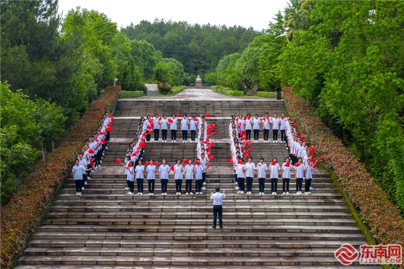 日前,长汀县河田二中100名学生参观全国中小学水土保持教育社会实践基地——长汀水土流失治理科教馆。活动结束后,该校学生在长汀县水土保持科教园广场的阶梯上列队拼成“100”字样,唱团歌,重温入团誓词,用特殊的方式感党恩,颂党情。 福建日报记者 戴敏 通讯员 陈天长 丘嘉瑞 摄影报道 |