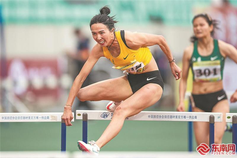 林雨薇在女子100米栏决赛中。福建日报记者 林熙 摄