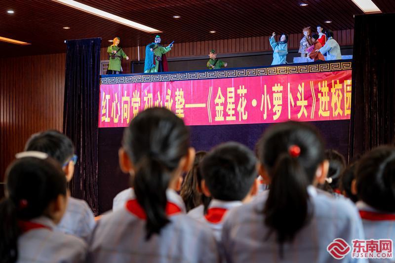 晋江市在党史学习教育中将传统非遗艺术与革命故事相融合。25日,在“薪火相传·童心向党”专题巡演的首场活动中,晋江市掌中木偶艺术保护传承中心的演员们走进百年老校东石镇金山小学,为学生们演出红色剧目《金星花·小萝卜头》。福建日报记者 王毅 通讯员 陈钧 林晓燕 摄影报道 |