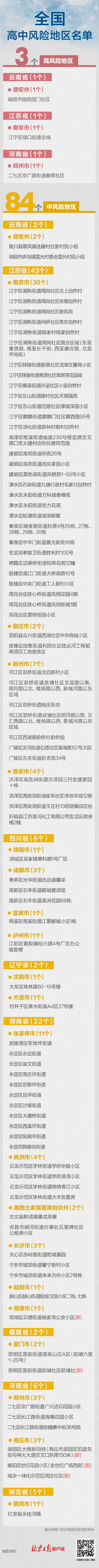 8月1日上午,扬州新增5地调整为中风险地区,截至12:00,全国现有高中风险区3+84个(名单附后)。 福州、泉州、漳州、南平、三明疾控中心发布最新提醒。 一起来看详情—— 福州发布最新通告 自7月31日起,江苏省宿迁市宿豫区陆集街道利民社区陆运河工程船闸项目工地宿舍区、淮安市盱眙县江苏淮河化工有限公司生活区宿舍楼2幢调整为中风险地区;自8月1日起,福建省厦门市思明区莲前街道前埔社区前埔社,河南省商丘市梁园区大商新玛特(商丘市梁园区凯旋东街与神火大道交叉口东南150米)、睢阳区世纪花园小区(金世纪广场西侧)、城乡一体化示范区周庄社区调整为中风险地区。广大市民要深刻认识新冠肺炎疫情防控的复杂性及不确定性,始终绷紧疫情防控这根弦,克服麻痹思想、侥幸心理。为精准做好“外防输入、内防反弹”,降低疫情输入传播风险,现将有关事项通告如下: 一、对7月17日(含17日)以来,自江苏省宿迁市宿豫区陆集街道利民社区陆运河工程船闸项目工地宿舍区、淮安市盱眙县江苏淮河化工有限公司生活区宿舍楼2幢;对7月18日(含18日)以来,自福建省厦门市思明区莲前街道前埔社区前埔社,河南省商丘市梁园区大商新玛特(商丘市梁园区凯旋东街与神火大道交叉口东南150米)、睢阳区世纪花园小区(金世纪广场西侧)、城乡一体化示范区周庄社区入(返)榕的人员按规定采取隔离措施。 7月30日起,从福建省厦门市思明区,7月31日起,从江苏省宿迁市宿豫区、淮安市盱眙县,8月1日起从河南省商丘市梁园区、睢阳区、城乡一体化示范区入(返)榕的人员必须持有48小时内有效核酸检测阴性证明。 二、凡7月16日(含16日)以来有福建省厦门市思明区其他低风险区域旅居史,7月17日(含17日)以来有江苏省宿迁市宿豫区、淮安市盱眙县其他低风险区域旅居史,7月18日(含18日)以来有河南省商丘市梁园区、睢阳区、城乡一体化示范区其他低风险区域旅居史的入(返)榕人员应主动向所在社区(村居)、所在单位、所在酒店报备相关情况,由社区(村居)对其进行14天健康监测,健康监测起算时间为入榕时间,健康监测开始时和结束前各进行一次核酸检测。 三、近期我市市民如无必要,请勿前往福建省厦门市思明区,江苏省宿迁市宿豫区、淮安市盱眙县,河南省商丘市梁园区、睢阳区、城乡一体化示范区。如确需前往,务必做好个人防护,准确记录好自己的活动轨迹;从福建省厦门市思明区,江苏省宿迁市宿豫区、淮安市盱眙县,河南省商丘市梁园区、睢阳区、城乡一体化示范区返榕后,要按我市相关防控要求落实健康管理措施。 四、请广大市民朋友响应国家新冠病毒疫苗接种政策,积极配合疫苗接种,保护个人健康,降低感染和发病风险,共同构筑人群免疫屏障。 五、请广大市民朋友注意冷冻(藏)食品安全,密切关注政府部门发布的进口食品检疫信息;冷冻(藏)食品经营者应配合政府部门落实健康监测、核酸检测等防控措施。 六、请广大市民朋友时刻注意个人防护,保持安全社交距离,养成规范佩戴口罩(尤其是在乘坐公共交通工具和在公共场所活动时)、勤洗手、常通风、不扎堆、不聚集、少聚餐、分餐制等良好卫生习惯,倡导健康的生活方式。 七、如出现发热、干咳、乏力、咽痛、嗅(味)觉减退、腹泻等症状者,要佩戴一次性医用口罩及以上级别口罩,及时到具有发热门诊(诊室)的医疗机构就诊并进行核酸检测,就医过程尽量避免乘坐公共交通工具。 八、对因瞒报、谎报造成严重后果的,依法追究责任。 福州市新型冠状病毒感染肺炎防控工作应急指挥部 2021年8月1日