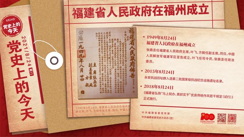 2021-08-24 00:00:00 来源:中共福建省委宣传部、中共福建省委党史方志办  责任编辑:周冬  作者: