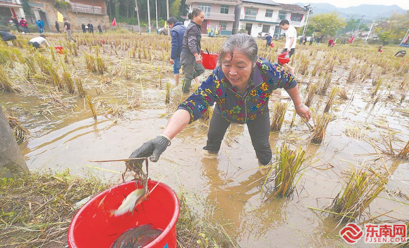 东南网10月24日讯(福建日报记者 王毅)22日,以“数字开启未来、科技引领生活”为主题的福建省农业科学院数字农业科技开放日活动在光泽县止马镇仁厚村举办,现场展示了数字农业科技生态稻渔产业成效。图为稻谷收获后的二次丰收,村民们抓鱼都很开心。 在仁厚村福瑞鲤2号稻田生态养殖测产验收现场,专家组组长、中国水产科学研究院淡水渔业研究中心研究员董在杰宣布了验收结果,稻花鱼平均亩产近60公斤。仁厚村2017年开始实施可视化监管与网络认养至今,村里的联农农业合作社经营规模增长了6倍,通过实施稻鱼混养和生态种养生物信息技术等,增加了水稻产量和农民收入,提升了稻米品质,稻田里的鱼色泽金黄、品质优异。每亩稻田鱼、米总产值可达5000元,2020年每亩大米平均销售额比2017年增长66.31%。 |