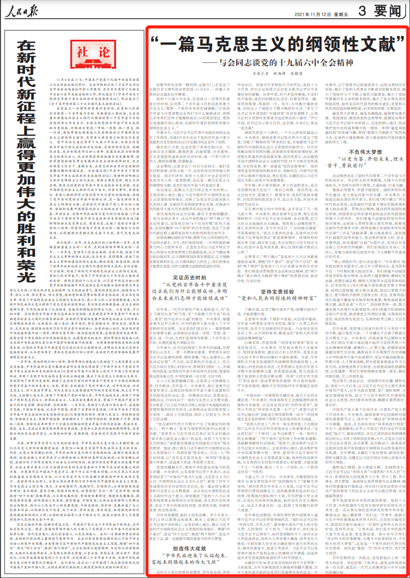 百年来,一代代中国共产党人接续奋斗,有“乱云飞渡仍从容”的气度,有“不破楼兰终不还”的决心,更有“而今迈步从头越”的豪迈。中央委员、福建省委书记尹力表示,中华民族伟大复兴进入了不可逆转的历史进程。决议是我们党历史上一篇里程碑式的重要文献,必将推动全党进一步统一思想、统一意志、统一行动,为我们党领导夺取第二个百年奋斗目标、实现民族复兴领航定向。