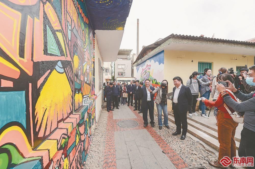 两岸嘉宾在欣赏涂鸦大奖赛获奖作品。 东南网12月11日讯(福建日报记者 刘深魁 文/图)乘风踏浪过海峡的妈祖、大红灯笼高高挂的台湾夜市、威严灵动的风狮爷、飞越台湾海峡的高铁……五彩斑斓的涂鸦作品在厦门集美大社文创旅游街区的墙面上鲜活“飞舞”,让这一传统村落处处洋溢着青春的气息。 10日,作为海峡论坛最具“颜值”的活动之一,第三届创意涂鸦大奖赛颁奖典礼在这里火热上演,两岸青年用手中的画笔为老街换上了绚丽的新装,也向民众诉说着两岸同根同源、血浓于水的历史渊源。 在一阵阵喝彩声中,“重头戏”登场了,大赛各大奖项一一揭开面纱:作品《灯火阑珊处》摘得桂冠,《圆梦一闽 两岸同门》获得二等奖,《寻根之旅》获得三等奖,《海峡一日游》《集装箱》获得优秀设计奖。 “一张画,两岸情。我们的作品融合了两岸元素,台湾代表景色选取台北饶河观光夜市,厦门代表景色是集美学村、大社戏台和福船,天顶则以星空图案填充,象征两岸同处一片天空下,和平发展是主旋律。”《灯火阑珊处》创作成员李燕迪和小伙伴陈海松、曾伟福一道,用画笔和汗水完美阐释了“融通两岸 共绘家园”的大赛主题。 “厦金共绘一张图”,也是本次典礼的一大亮点。在视频连线环节,随着大屏幕画面徐徐展开,上届涂鸦大赛获奖选手、金门陶艺大师王明宗映入观众的眼帘,他在金门涂鸦现场,一边隔海向厦门会场问好,一边借由作品诉说着自己的两岸故事。“疫情割不断真情,大家虽隔海涂鸦,但心意是相通的,希望‘小三通’早日恢复,两岸同胞常来常往,共叙亲情。” 王明宗笔下的作品名为《海峡一日游》,由卢启津、徐晨晖、朱炳增等人创作,以时下流行的游客“打卡”拍照的视角,展现了厦金两地“一日生活圈”的风景。同名同画面的作品,在大社上墙后,同样让人赞不绝口。 “希望通过涂鸦这一广受年轻人欢迎的形式,增进两岸青年对中华传统文化的认知与了解,让两岸交流更加充满活力。”在大赛评委、台青杨超闳看来,一幅画在厦金两地同时落地,从中可以看出两岸青年对促进两岸交流的美好心愿。 夕阳西下,观众久久不愿散去,掌声、喝彩声依旧回荡在大社上空。夕阳的余晖洒在涂鸦作品之上,彼此交织成一幅飘动的画面,映照出两岸青年的深厚情谊,大家依依不舍话离别,许下“来年再相会”…… |