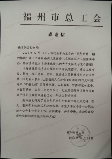 一直以来,福州亿力电力工程有限公司带电作业分公司深入推进党史学习教育走深走实走心,这三封感谢信不仅体现了政府部门对亿力带电分公司工作的充分肯定,更见证了该公司将党史学习教育转化成为民办实事的具体行动。