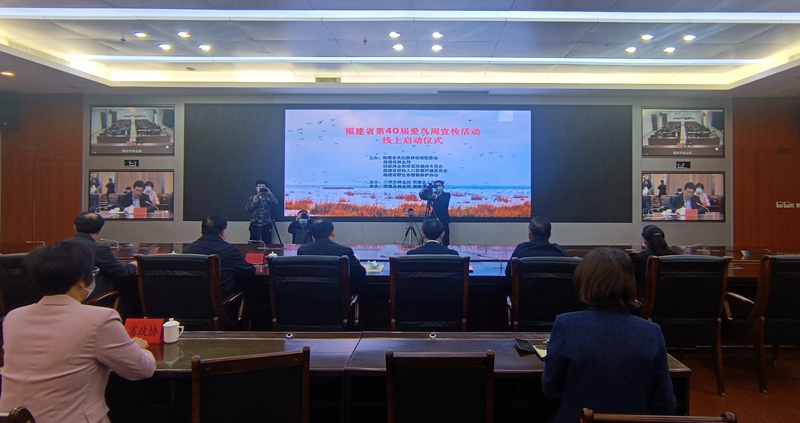 启动仪式现场(东南网记者 陈静摄) 东南网3月25日讯(本网记者 陈静)今年3月25日至31日是我省第四十届“爱鸟周”,宣传主题是“守护蓝天精灵,共享美好家园”。3月25日上午,福建省林业局联合省关注森林活动组委会等单位启动“爱鸟周”活动线上启动仪式。省林业局局长王智桢、副局长王宜美,国家林草局福州专员办一级巡视员李彦华、副专员宋师兰,省政协人口资源环境委员会副主任张永军,省野生动植物保护协会会长林少霖在主会场出席活动,中国野生动物保护协会武明录秘书长以视频连线方式参加活动。全省林业系统全程线上参会。