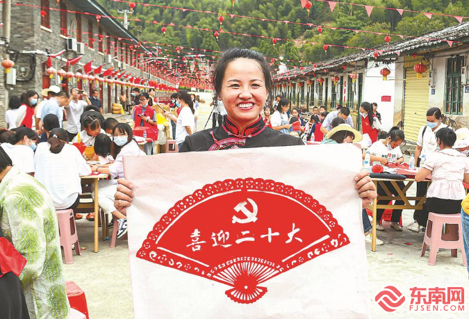 23日,三明市沙县区“五福”临门——2022年“福”文化主题活动走进大洛镇昌荣村,写福联、绘福画、剪福纸、刻福字、绣福袋,五项饱含“福”文化内涵的活动吸引广大村民积极参与,将满满福气传递,喜迎党的二十大胜利召开。图为当地畲族群众展示自己的剪纸作品。 福建日报记者 游庆辉 通讯员 张凌欣 许琰 摄影报道 |