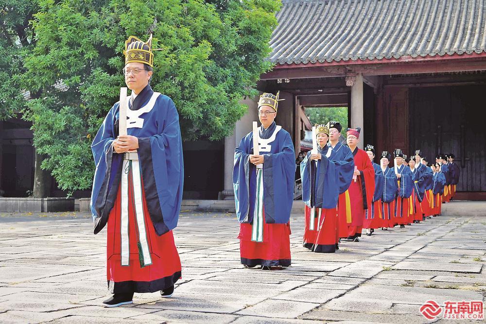 在福州文庙,教师代表列队入殿,参加祭孔典礼。福建日报记者 游庆辉 摄
