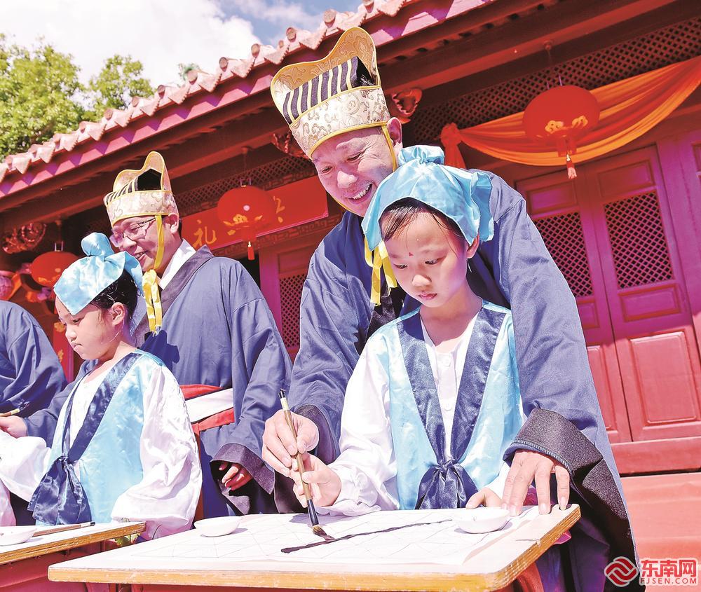 在同安孔庙,当地小学生参加开笔礼。福建日报记者 杨珊珊 通讯员 韩超 夏海滨 摄 东南网9月30日讯(福建日报记者 杨珊珊 游庆辉) 9月28日是孔子诞辰日。当天,我省多地举行祭孔仪式,表达对孔子的敬仰。 在福州市,福州市博物馆和福州市传统文化促进会分别在福州文庙与螺洲孔庙举办祭孔典礼,来自福州多所学校的教师代表按鸣钟鼓、入殿、恭诵祝文等传统礼仪,向先师的圣像一一庄重行礼。 礼乐和鸣之下,2022年厦门(同安)孔子文化节28日在同安孔庙举行。本次活动以“儒济银同 文教昌明”为主题,儒学专家和师生代表齐聚一堂,共同见证一年一度的祭孔典礼。活动全程在线上直播,扩大传统文化影响力。 |