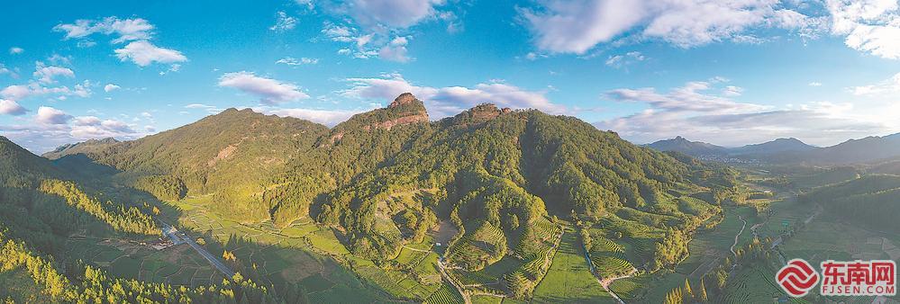 武夷山燕子窠生态茶园,一片翠绿。2021年,福建毛茶产量48.8万吨,茶树良种覆盖率达到96%,全产业链产值超1400亿元,居全国首位。福建日报记者 游庆辉 摄