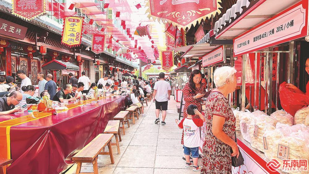 三明市沙县区夏茂镇俞邦村寻根追味美食街,游客品尝地道小吃。近年来,沙县小吃产业不断发展壮大,带动30余万人就业。福建日报记者 吴鹏 通讯员 叶菀淇 摄