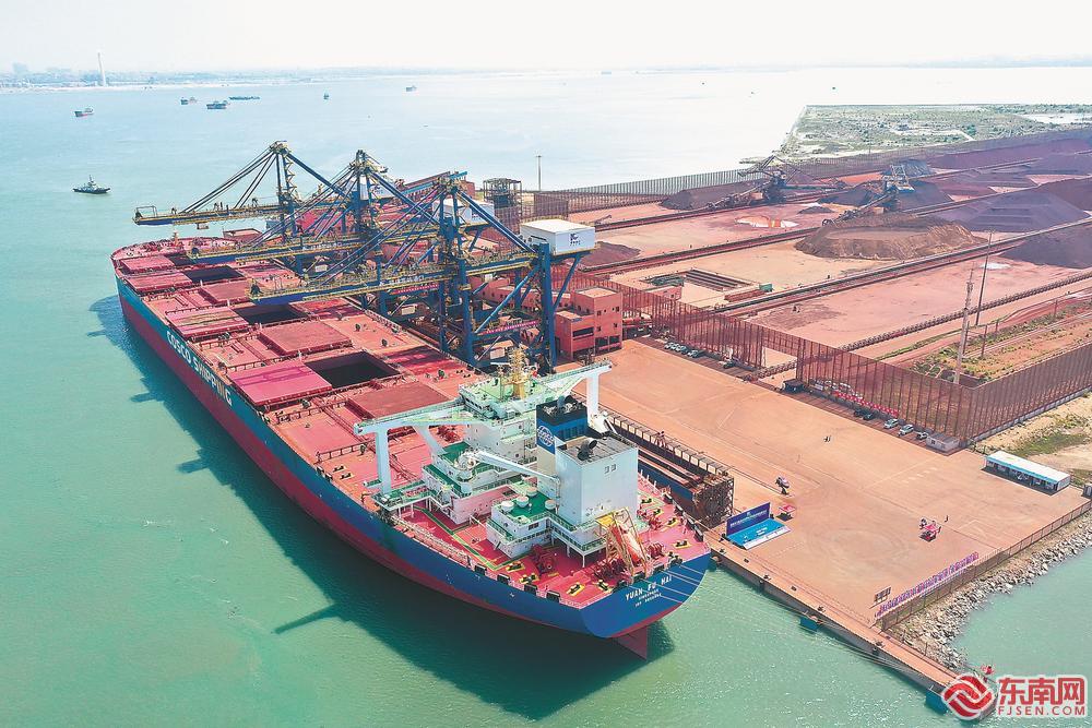 中远海运“远福海”轮装载着40万吨巴西铁矿石,靠泊福建港口集团罗屿港。莆田罗屿港是我省首个、全国第六个满足世界最大散货船靠泊接卸的港口。福建日报记者 王毅 摄
