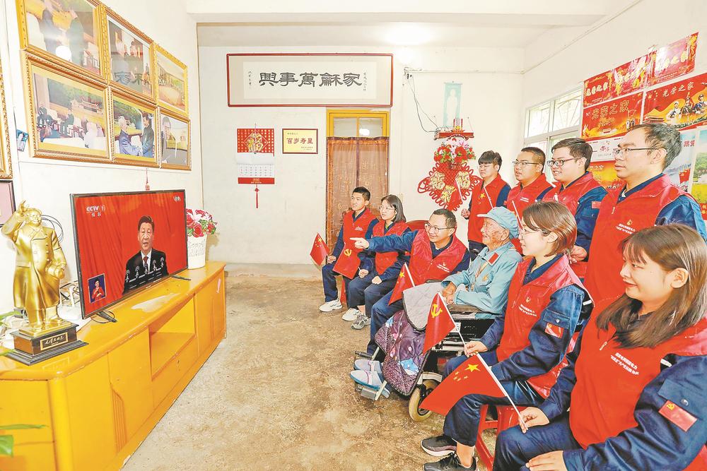 16日,国网上杭县供电公司共产党员服务队来到上杭县才溪镇发坑村百岁老红军林攀隆家中,一起收看党的二十大开幕会。戴敏 郭弘俊 摄 当好群众的服务员 □段金柱 卞军凯 发自福州 二楼的社区党校里,党员群众有序坐好、认真收看;一楼的党群服务中心大厅,前来办事的居民忙完后,围坐在大屏幕前专注聆听……16日上午,福州市鼓楼区军门社区100多名党员和群众代表集中收看了党的二十大开幕会。 军门社区党委书记林丹作为党的二十大代表,正在北京参会,仍时刻牵挂着社区。“今天一大早,林丹书记专门打来电话,叮嘱我们社区工作者要认真学习领会总书记的报告,更好地服务群众,造福于民。”军门社区党委副书记谢榕说。 “建设人人有责、人人尽责、人人享有的社会治理共同体。”聆听习近平总书记在报告中关于社会治理的内容,军门社区的社区工作者们认真记录、细心体会。“习近平总书记的报告,为我们做好社区工作提供了根本遵循,增添了强大动力。”谢榕表示,社区工作者将按照党的二十大报告指引,当好人民群众的服务员,扎实做好基层党建、“一老一少”服务、智慧小区建设等工作,让老百姓切切实实感受到党和政府的温暖关怀。 助力民企“二次创业” □何金 发自晋江 16日上午,国网晋江市供电公司党委班子以及部分一线党员、员工齐聚公司会议室,一同收看党的二十大开幕会直播,现场响起阵阵热烈掌声。 国网晋江市供电公司党委书记阮丽双表示,习近平总书记的报告让人倍感振奋。报告指出,建设现代化产业体系,坚持把发展经济的着力点放在实体经济上,推进新型工业化,加快建设制造强国、质量强国、航天强国、交通强国、网络强国、数字中国。这凸显了总书记、党中央对经济工作的高度重视。晋江是我省县域经济发展的龙头,诞生了著名的“晋江经验”,近十年来,晋江的实体经济发展和转型走在全省前列,晋江的县域经济基本竞争力连续多年位居全国前五。国网晋江市供电公司将以党的二十大报告精神为指引,继续完善电力“产业链”,助力晋江民营企业“二次创业”,助力地方经济社会发展。 努力建设美丽中国 □林爱玲 发自莆田 位于木兰溪畔的玉湖新城,是以“截弯取直”后保留的木兰溪旧河道为中心,依势开发建设而成的。如今,这里绿道步道如带,地标建筑一字排开,功能完善、交通便捷,绿色生态惠及人民,成为莆田市践行习近平总书记治理木兰溪重要理念、持续推进木兰溪改造整治的生动实践。 16日,莆田市荔城区玉湖新城改造建设指挥部办公室主任李金火收看了党的二十大开幕会。“报告提出,时代呼唤着我们,人民期待着我们,唯有矢志不渝、笃行不怠,方能不负时代、不负人民。这让我深受鼓舞。”李金火说,站在新的历史起点上,面对第二个百年奋斗目标,作为一名新城建设者,深感担子重、责任大,他将把“变害为利、造福人民”的治水理念与贯彻党的二十大精神相结合,努力把玉湖新城建设好发展好,为建设美丽中国提供生动范本。 走特色乡村振兴路 □范陈春 王婷婷 发自福鼎 16日上午,中国扶贫第一村——福鼎市磻溪镇赤溪村,40多名干部群众早早来到村委会二楼会议室,围坐一堂,收看党的二十大开幕盛况。 “报告提到,坚持大团结大联合,动员全体中华儿女围绕实现中华民族伟大复兴中国梦一起来想、一起来干。我们深有体会,这几年赤溪村畲汉群众积极投身乡村振兴建设,住上了新房,经营农家乐、超市,做起茶叶生意,生活越来越好。我们将继续努力,把赤溪建设得更加美丽宜居。”赤溪村畲族村民钟丽眉说。 “十年巨变,赤溪村交通、产业、生态环境等不断向好。作为一名宣讲员,我将认真学习报告精神,领会发展方向,通过宣讲坚定群众信心,做奋斗路上的实干者。”福建省新时代宣讲师、赤溪村党总支原书记杜家住说。 实现新的图景,需要新的奋斗。赤溪村党总支书记吴贻国表示:“我们将主动融入福鼎全域旅游发展,大力发展白茶产业和乡村旅游业,努力走出一条具有闽东特色的乡村振兴之路,为全省、全国实施乡村振兴战略提供可学习可复制的‘赤溪模式’。” 把农村建设得更好 □马丹凤 赖虹敏 许琰 发自三明沙县 16日10时,在三明市沙县区夏茂镇俞邦村,一台电视机、一列长桌摆在村里的“寻根追味”小吃街上,当地的干部群众和远道而来的游客围坐一起,收看党的二十大开幕会。 去年3月,习近平总书记来俞邦村考察时曾与村民俞金珠亲切交谈。“看到电视上总书记正在作报告,感到非常亲切。”俞金珠说,“总书记在报告中反复提到‘创新’。我们也在尝试创新制作工艺,丰富小吃品种,提高小吃品质。” “为祖国感到骄傲!”来自三明市区的游客王海婷路过小吃街,驻足观看开幕会时由衷感叹。她对医改带来的变化深有体会,“以前排队看病耗时耗力,现在只要一部手机就可以线上预约、到点看病,非常方便”。 过去十年,夏茂镇发展日新月异。“聆听完报告,让我深受鼓舞。在今后工作中,我们要认真贯彻落实党的二十大精神,把农村建设得更好。”夏茂镇党委书记张卫华表示。 绘乡村振兴新图景 □蒋丰蔓 姚雨欣 发自武夷山 16日清晨,驱车驶入素有“武夷岩茶第一镇”的武夷山市星村镇,只见街道干净整洁,展现出乡村新气象。 不到10时,位于黄村村内的横凤茶部落内便围坐了20多名