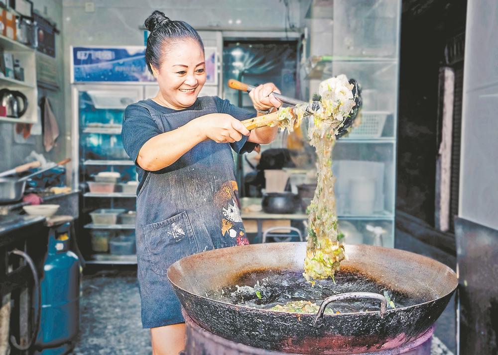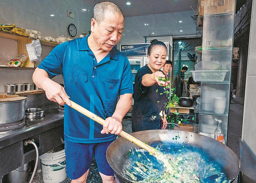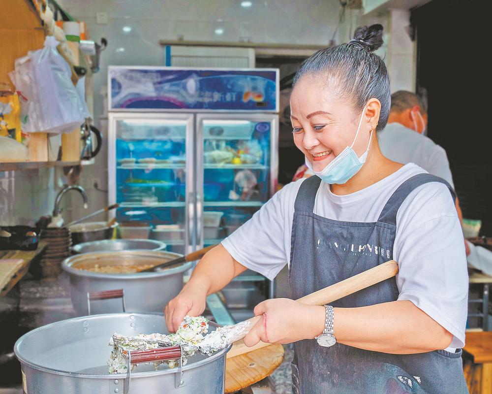 烹制“闽南糊” 东南网10月21日讯(福建日报通讯员 郑培銮 文/图) 霞浦县三沙镇出产的风味小吃“闽南糊”是地地道道的平民食品,以独特风味闻名遐迩。在外工作的霞浦三沙人只要一回到家乡,在那充满欢情的家宴上,总少不了这道特色美食。 三沙老街一家以“闽南糊”为主打的传统小吃店,是当地居民陈杰、黄妹夫妻俩经营的,有40多年历史。传统地道的风味,让小店生意一直不错。 “每家每户过年过节桌上都要有一碗‘闽南糊’。我从小爱吃,今年70多岁了,还是爱吃。它就是我们家乡的代表符号。”三沙镇居民林三寿说。 关于“闽南糊”的来历,还有一段传说。史书记载,唐代开闽王王审知“起自垅田,每以节俭自处,选任良吏,省刑惜费,轻徭薄敛,与民休息”,深受民众爱戴。王审知率兵入闽时,百姓纷纷拿出特产佳肴犒劳将士,将士们把吃剩的美味佳肴到处乱扔。王审知发现后,立即命令把将士们吃剩的饭菜和着闽南出产的地瓜粉煮了再吃,还带头品尝。没想到,这种大杂烩的食品极其美味,令众将士大快朵颐。而且,这种混合的食品冷却后,也便于将士们行军携带,于是在军中推行,不久就在闽南民间流传开了。宋明时期迁居到三沙的闽南移民又把这种烹调方法带到了霞浦三沙。为了不忘故土,三沙人就将之命名为“闽南糊”。 烹制“闽南糊”,选料极其讲究。要把三沙出产的海鲜虾仁、墨鱼鲞和瘦猪肉、香菇、笋干、芹菜、葱花等切成细块,煮熟做汤料。然后,选用三沙出产的精白地瓜粉,用冷水泡成浆,搅拌均匀后,慢慢倒进煮熟的汤料中。同时,用特制的圆滑细长的木棍,不断搅动锅里的浆料。一边不停地搅动,一边不断地往锅里添加带有葱花的熟猪油,直至锅里的地瓜粉浆煮熟变成油光闪亮的暗绿色。等到火候恰当,往锅里均匀撒入炒熟的花生仁,再用木棍徐徐搅拌片刻。 “我们家制售‘闽南糊’,是从我父亲手上传承的,生意相当不错。平时每天烹制6铁锅,逢年过节要制作15锅,年纯收入达30多万元。”陈杰说,夫妻俩靠一碗小吃走上了发家致富路,不仅在三沙盖起了小洋楼,还在儿子工作的西安添置了房产,生活过得有滋有味。 如今,随着三沙成为旅游胜地,南来北往的游客将“闽南糊”的美味日益传扬。它逐渐走出故里,不再只是三沙人的乡愁,更是天下人的口福。 |