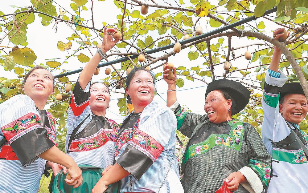 十八洞村村民在采摘猕猴桃。 龙爱清 摄 □湖南日报全媒体记者 陈奕樊 “村里每天都有新鲜事。”党的二十大代表,湖南湘西土家族苗族自治州花垣县十八洞村党支部书记、村委会主任施金通细数着新变化:如火如荼建设田园综合体,预计在今年年底可竣工运营;大力发展油茶产业和林下经济,村民增收路径愈加多元化…… 2013年11月3日,习近平总书记来到十八洞村,在梨子寨村民院坝首次提出了“精准扶贫”的重要论述。 “十八洞村要脱贫,得从根本上改变‘等靠要’的观念。”施金通和村“两委”、驻村工作队趁热打铁,共同探索“思想道德建设星级化管理”模式,还通过举办道德讲堂,调动群众积极性。 思想通了,产业也要跟上。利用“飞地经济”模式,十八洞村在30多公里之外建设了一个千亩猕猴桃基地,村民们不仅能务工,还能分红。引入外来投资,建成十八洞村山泉水厂,一条全自动生产线每小时可生产约1万瓶水,每年为村集体创收60万元左右。形成了5大产业体系,并带动周边26个村群众发展。 “村民们如今都过上了新生活。”施金通说,返乡大学生成立电商工作室,为“绿水青山”直播带货;妇女们组织起来建立了苗绣合作社,每年可以拿下几十个项目订单;村民化身讲解员,带领游客感受十八洞村的山乡巨变…… 这个曾经穷困的湘西苗寨上演了发展奇迹:2021年,村人均纯收入突破2万元,村集体经济收入268万余元。2021年2月,十八洞村荣获“全国脱贫攻坚楷模”称号。 施金通表示,十八洞村将着力打造坚强有力的基层战斗堡垒,让每一个基层党员干部都成为乡村振兴的调查员、战斗员和勤务员。同时,期待吸引越来越多善经营的“农创客”和懂技术的“田秀才”,助推十八洞村产业可持续发展。 骆驼湾村 坚定信心 变土为金