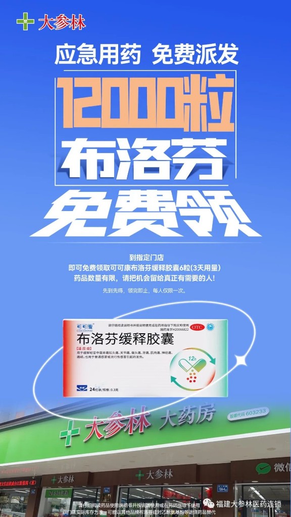 周六 周日 大参林药房在福州首批发放1.2万粒退烧药和6万包阿咖酚散