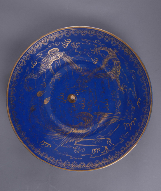 清 景德镇窑蓝釉描金龙凤大盘(福建博物院藏)福建博物院供图