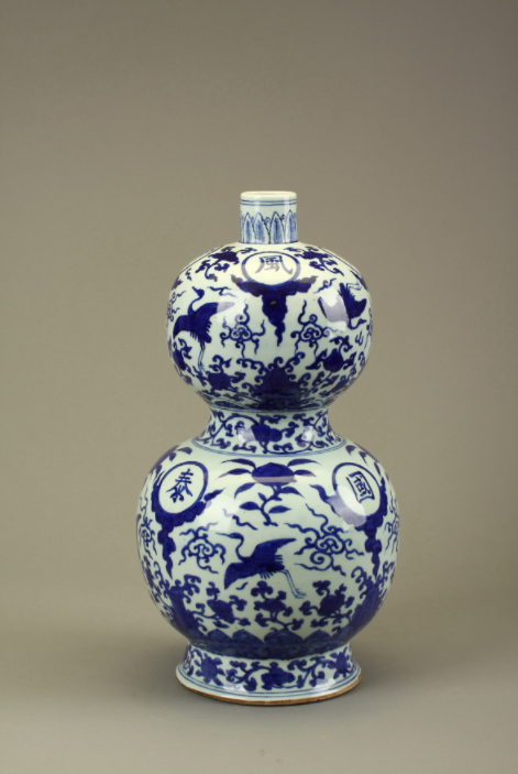 明 景德镇窑嘉靖款青花仙鹤纹葫芦瓶(福建博物院藏)福建博物院供图