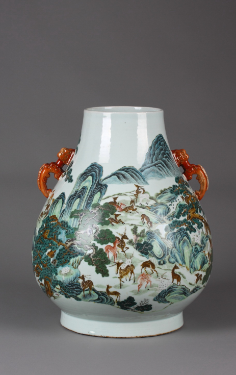 清 光绪景德镇窑双耳粉彩百鹿尊(福建博物院藏)福建博物院供图