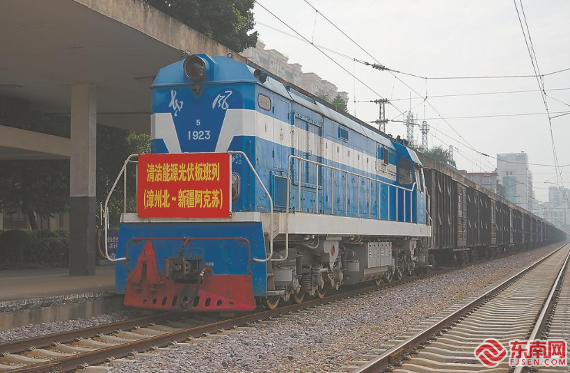 20日下午,一列满载着光伏板的列车从漳州北火车站启程,开往新疆阿克苏站。该趟班列全程运输里程5102公里,运输货物重1228.5吨,货值3751.8万元,预计6天后到达。 此次我省“光伏”班列成功首发,是推进“公转铁”绿色运输增量的重要举措,也是对“碳达峰、碳中和”目标的积极响应。 福建日报记者 张颖 通讯员 刘秋婷 摄 |