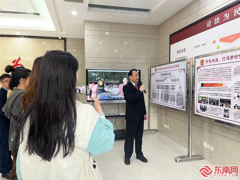 “大国基理”网络主题宣传活动采访团走进泰宁县人民法院金湖人民法庭。东南网记者 林瑶 摄 东南网4月24日讯(本网记者 林瑶)泰宁县人民法院金湖人民法庭坐落在美丽的大金湖畔,是三明市法院唯一的景区法庭。 据了解,2019年5月,泰宁法院金湖法庭首创推出了全省首个“背包法庭”,法官背着背包进村入户,深入基层开展巡回审判、多元调解、普法宣传等活动,做到“一呼就应、一背就走、简便易行成本低、随时随地效率高”。 2021年,结合“一党委三中心”建设和基层争创“六无”村(社区)活动,泰宁法院总结拓展“背包法庭”的工作经验,向全院推广——采取庭室挂包、分片负责的方式,将巡回审判的服务范围向社区、企业、学校、军营、单位、家庭延伸,实现全院参与、全员行动、全域覆盖;成立“背包法庭”(水西社区)服务站等一批示范点,制定“背包法庭”的标准化司法服务工作指南,形成可复制、可推广的经验。 “我们不仅要保障司法的公正性,还要体现司法的便利性和亲和力。”泰宁县人民法院党组书记、院长张志明表示,“背包法庭”体现了司法为民、深入一线、服务基层、方便群众的执法理念。2019年以来,泰宁法院金湖法庭共审结各类案件900余件,案件数呈逐年下降趋势,民事案件调解撤诉率71.25%,无一改判和信访。先后被授予全国法院指导人民调解工作先进集体、省级优秀人民法庭、全省平安建设先进集体等荣誉。 记者手记 一个背包、一台笔记本电脑、一张便民联系卡、一组“法治宣传套餐”……“背包法庭”始创于解决旅游纠纷,随着工作推进,为解决农村群众打官司交通不便、寻求法律服务费时费力等难题,泰宁法院提升“背包法庭”工作模式,打造“半小时”司法服务圈,受到基层群众好评。 泰宁法院创新便民利民服务举措,“背”起初心、下沉一线,满足人民群众日益增长的多样化司法需求的同时,提高了法治宣传教育的针对性、实效性。让法律走进百姓生活的做法值得推广学习。