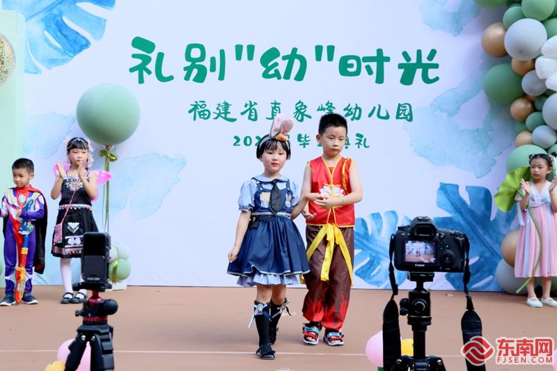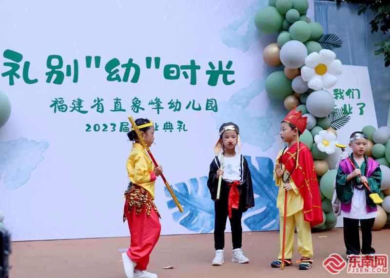 毕业典礼现场。东南网记者林先昌 摄 东南网6月29日讯(本网记者 林先昌 李牧晨)26日,省直象峰幼儿园举行礼“别”幼时光2023届大班年段毕业典礼,全体大班师生、幼儿家长欢聚一堂,共同为即将升入小学的孩子们送上最真挚的祝福和鼓励。 人生中有很多个三年,但幼儿园时期的三年格外特别。每一次欢笑与哭泣,每一次尝试与挑战,每一轮春夏秋冬,逐渐刻画出孩子们可爱的模样。 毕业典礼,是一场温暖的告别,也是孩子们下个人生阶段的新起点。小朋友们用精彩纷呈的表演定格毕业的美好瞬间,有戏剧表演《三打白骨精》、情景剧《再见幼儿园》、幼儿走秀《在幼儿园走过的四季》等,将幼儿园毕业典礼赋予了特殊意义。 典礼上,省直象峰幼儿园园长陈秀兰向顺利毕业的孩子们表示热烈祝贺,她希望所有小朋友们带着幼儿园所有老师的祝福和深深的爱,飞向广阔的天空,飞向未来的辉煌。 稚嫩的小苗和美丽的花朵离不开园丁精心的呵护,为了表达对老师的感激之情,毕业生代表将鲜花献给园长及幼儿园各岗位老师代表。 “抱一抱老师说声您辛苦了!让感恩的话语化作美丽的花束献给最敬爱的人。”一束鲜花、一声辛苦了,将孩子们心中的千言万语化作声声感谢,在场的所有人都不禁热泪。