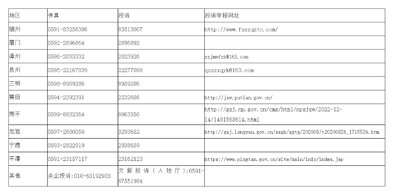 杜绝欠薪!福建省各地市清欠办联络表公布