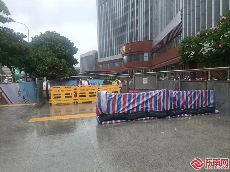 在福州南门兜地铁站出入口设置了防水挡板(东南网记者 林先昌摄)