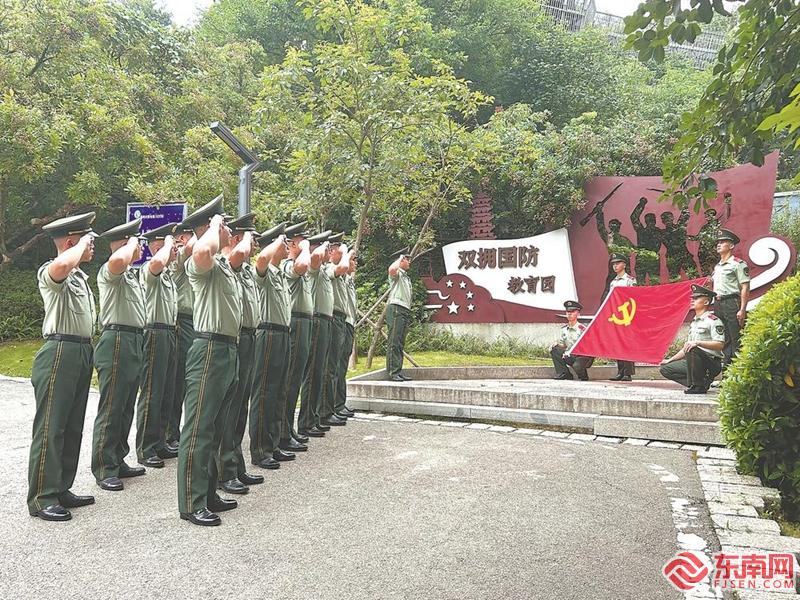 “八一”前夕,驻福州武警某部官兵走进福州“双拥国防教育”主题园,接受“爱我人民爱我军”的光荣传统教育。