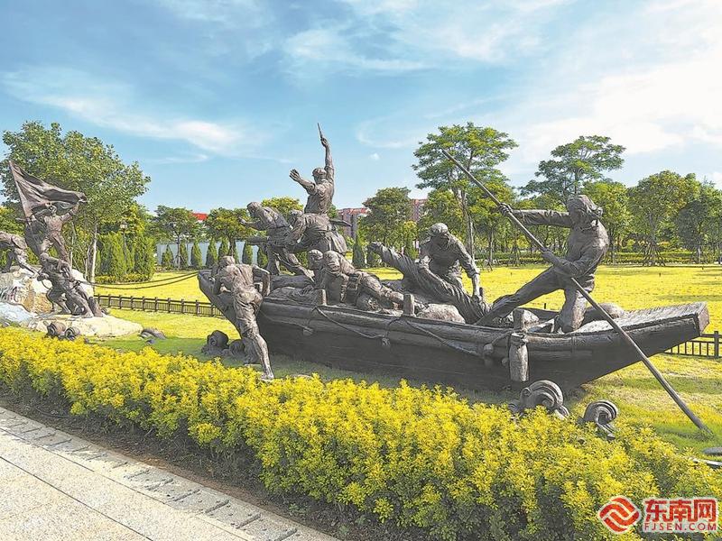 月港双拥公园以立雕形式展现龙海船工渡海作战的风采。