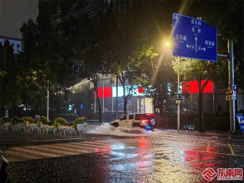 福州观风亭街附近,大雨导致路面积水。东南网记者 冯川叶 摄 |