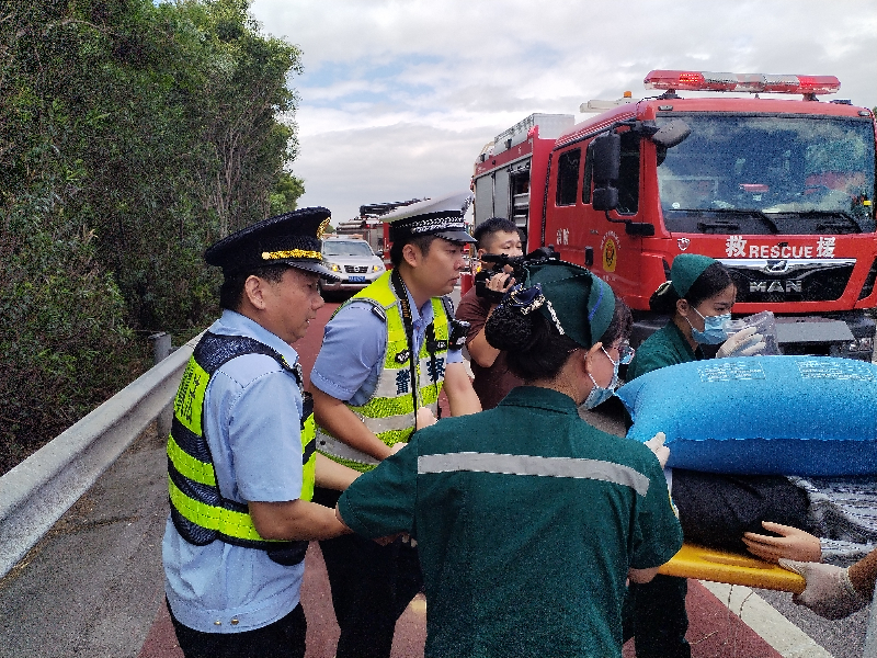提升应急处置能力。莆田高速执法支队联合辖区高速交警、高速路勤中心及地方消防、医院等部门在沈海高速B2146K+200M处开展高速公路事故处置综合演练。事故模拟货运车辆与小车发生追尾,有人员受伤并受困,“一路多方”立即启动应急预案,分工明确、各司其职、密切配合,快速解救受困人员,拖离事故车辆,恢复正常交通。通过演练,有效检验和完善应急处置预案,进一步提升多部门联合应急救援能力,为高效处置两节期间应急突发事件打好坚实基础。