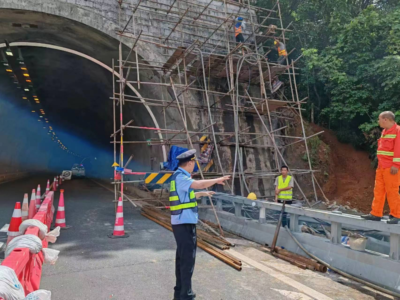 加强路面施工监管。龙岩高速执法支队紧盯路面施工安全,紧跟施工进度,对正在施工的隧道LED灯具安装工程、隧道入口洞门墙修复施工等项目进行严格监管,督促施工单位规范施工现场布控,加强施工人员安全管理,切实落实安全生产主体责任。漳州高速执法支队结合执法巡查进一步加强对施工作业现场的监管,对现场作业人员进行安全教育,发现问题当场下发整改通知书,责令限期整改,对接辖区所有施工单位,要求在中秋国庆两节期间停止一切涉路施工作业。