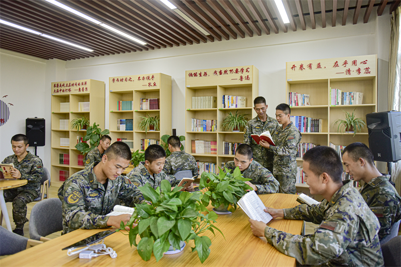 支队开展读书活动。武警福建总队机动支队 供图 官兵们正在表演《腰鼓舞》。武警福建总队机动支队 供图